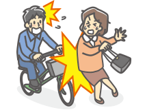 日本国内、国外を問わず、記名被保険者、その配偶者またはこれらの方の同居のご親族・別居の未婚のお子さまが日常生活における偶然な事故(例:自転車運転中の事故など*)により、他人にケガなどをさせた場合や他人の財物を壊した場合、または誤って線路に立ち入ったことなどにより電車等を運行不能にさせた場合に、法律上の損害賠償責任の額について、保険金をお支払いする特約です。
